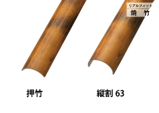 竹に焼き目を付けて加工した物で、焼き具合で濃淡の差を出しています。濃淡と渋い竹の色合いはどのようなシチュエーションにも溶け込みます。